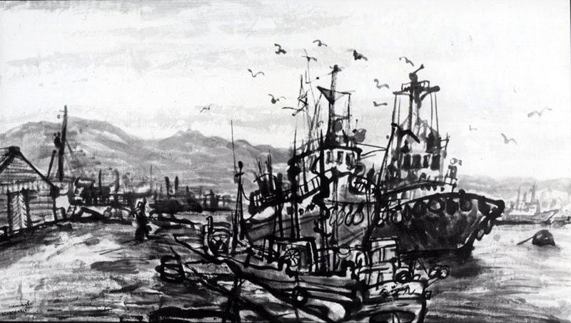 B-2 「かもめ飛ぶ波止場 (捕鯨船) 」 125 × 70cm