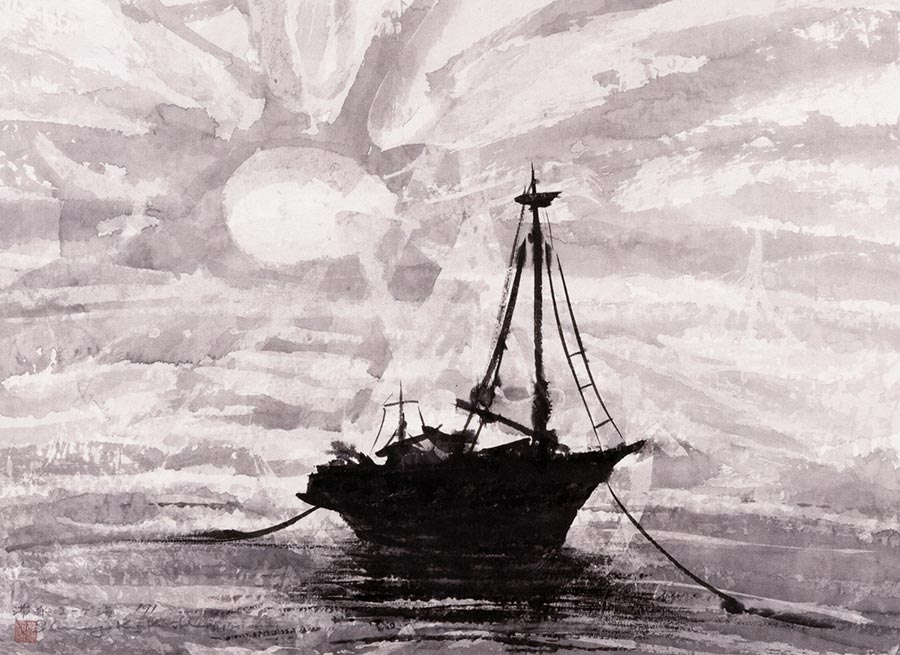 B-31 「滞船エーゲ海」 軸装 55 x 73cm
