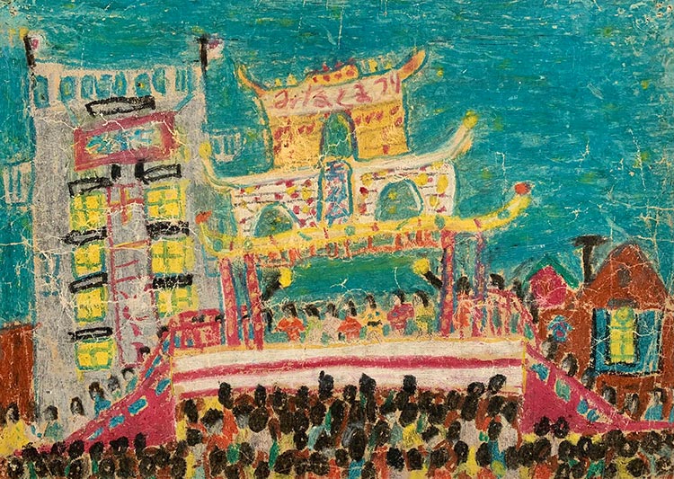 D-4 「港まつり」 クレヨン 26 x 36cm