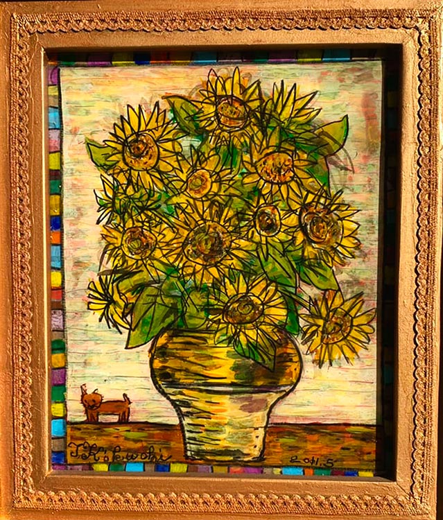 G-19 「猫が眺めるひまわり」 27 x 22cm