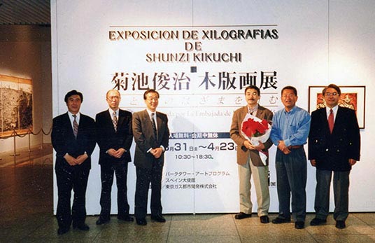 | 『墨画』 (軸装) と 『木版画』 (屏風) を 同時に展示した。 (スペイン大使館後援) |