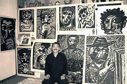 | 「男シリーズ」 は体臭を感じさせる彫りで ユニークな作風だ、 |